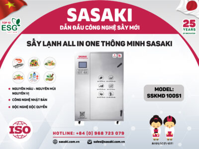 Nhờ kết hợp 3 công nghệ sấy lạnh, sấy bơm nhiệt và kho lạnh, máy sấy lạnh SASAKI được coi là sản phẩm tiên phong, dẫn đầu công nghệ mới, khắc phục được nhiều hạn chế của các máy sấy truyền thống.